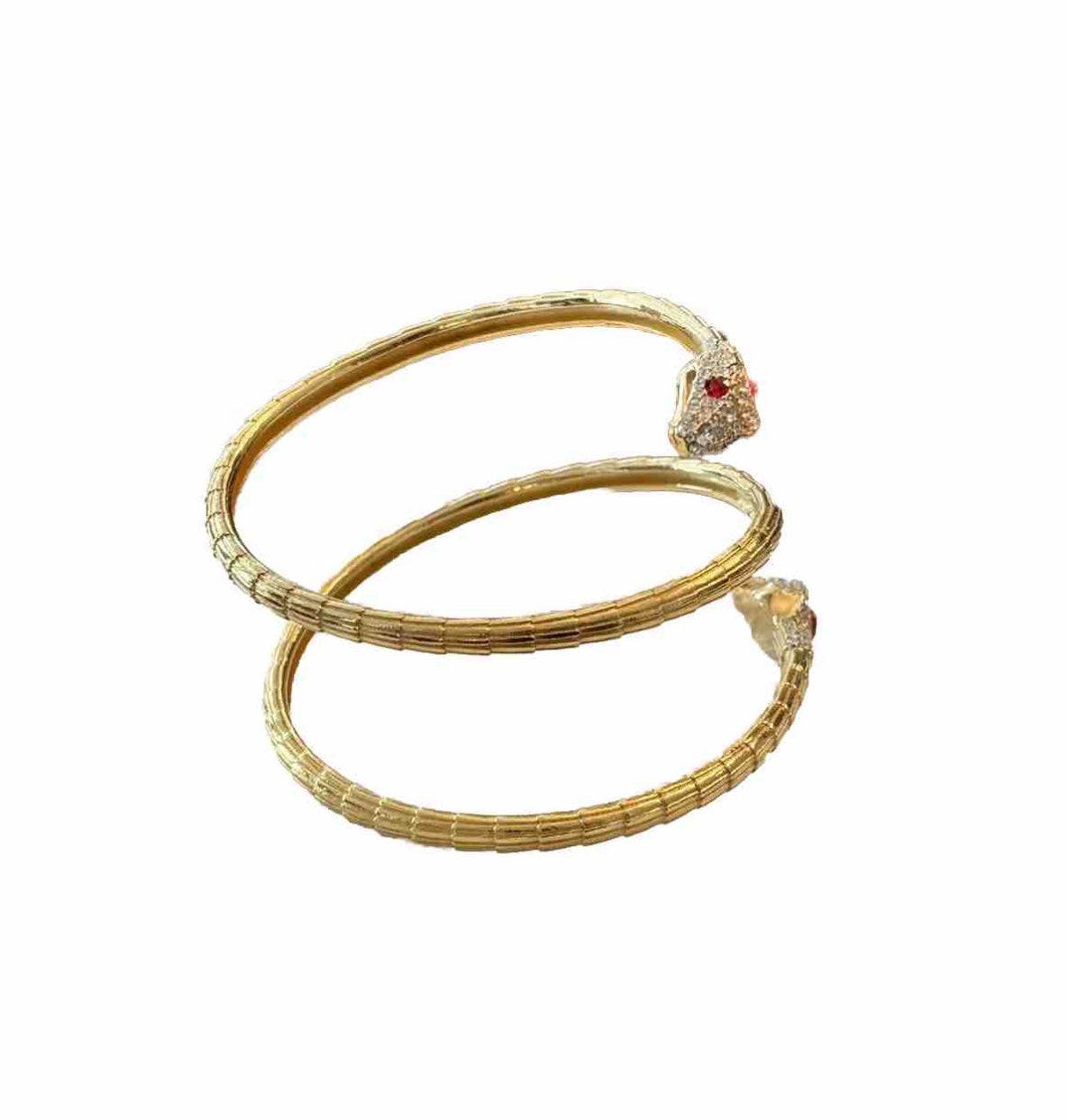 Gucci Double Crystal Snake Wrap Golden Armband Bracelet Bangle