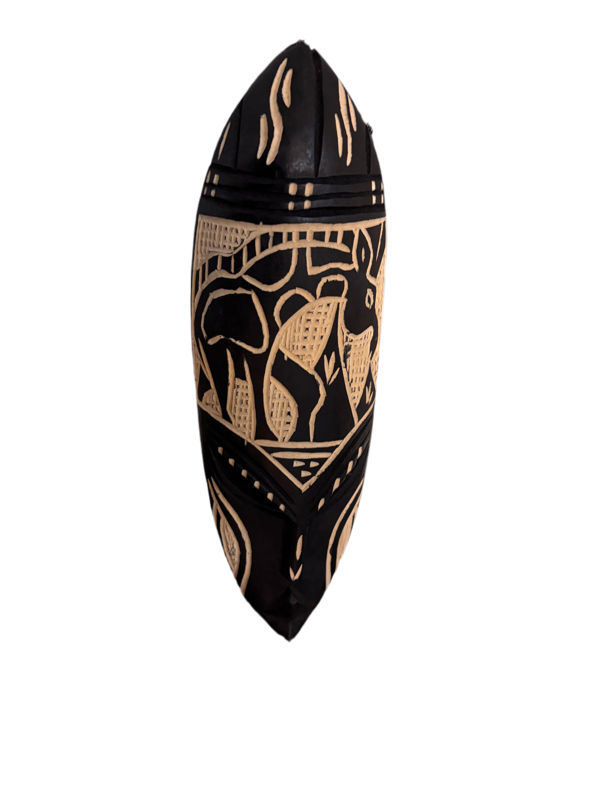 Crafted by skilled artisans in Africa, this hand-carved and hand-painted antique mask sculpture from Nigeria is a striking expression of cultural heritage and traditional craftsmanship. Expertly sculpted from wood and finished in rich brown tones, each detail reflects the artistry and symbolism passed down through generations.